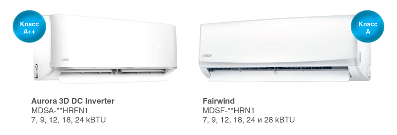 Новая полностью инверторная сплит-система MDV серии Aurora (DC-инверторный компрессор, DC-инверторные вентиляторы наружного и внутреннего блоков) с высоким уровнем энергоэффективности.